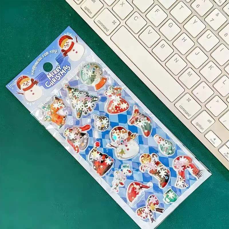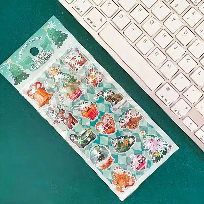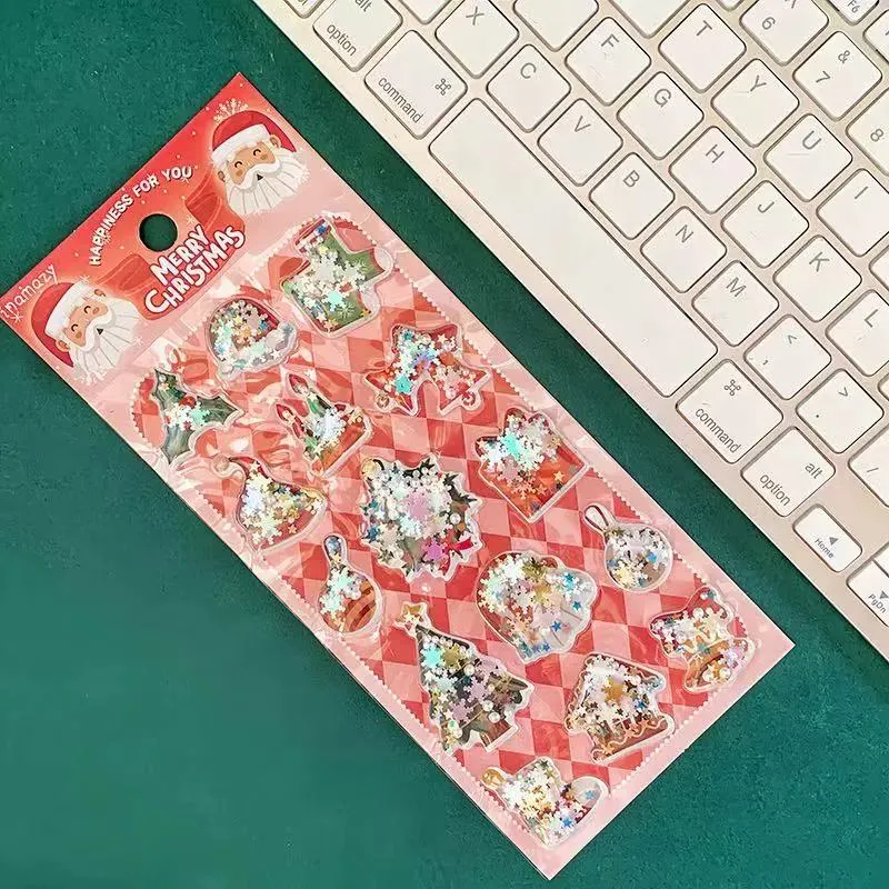 Jojo PackAng mga sticker ng Christmas shaker ay isang uri ng pandekorasyon na sticker na may nakataas na epekto ng 3D. Ang mga pattern sa mga sticker na ito ay nakatayo mula sa ibabaw, na lumilikha ng isang naka -texture na pakiramdam. Madalas silang nagtatampok ng mga klasikong disenyo ng Pasko tulad ng mga snowflake, Santa Claus, reindeer, at holly. Ang mga sticker na ito ay parehong maganda at masaya na hawakan. Malawakang ginagamit ang mga ito para sa dekorasyon ng holiday.