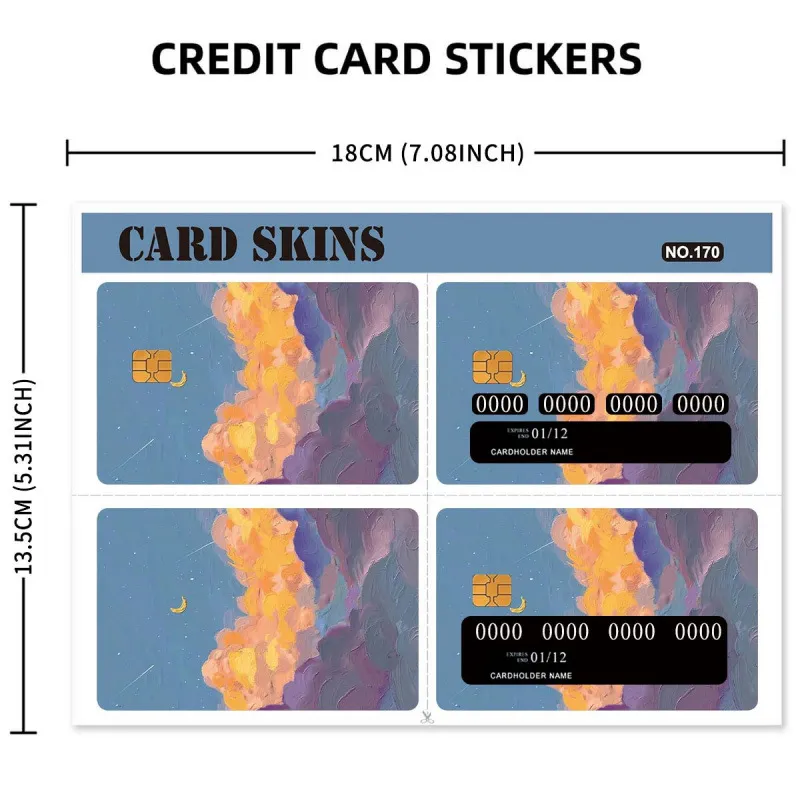Mga sticker ng credit carday mga personalized na pandekorasyon na sticker na maaaring ma -stuck sa ibabaw ng mga credit card. Ang mga ito ay gawa sa mga ultra-manipis at kapaligiran na mga materyales at hindi nakakaapekto sa normal na pag-swipe ng card o pagbabasa ng chip. Hindi lamang ito nagbibigay-daan sa mga credit card upang ipakita ang isang natatanging istilo, ngunit ang ilang mga produkto ay mayroon ding mga praktikal na pag-andar tulad ng anti-swipe (RFID blocking), at sa parehong oras na suporta sa logo ng suporta. Ito ay isang produkto na pinagsasama ang kagandahan at pagiging praktiko.
