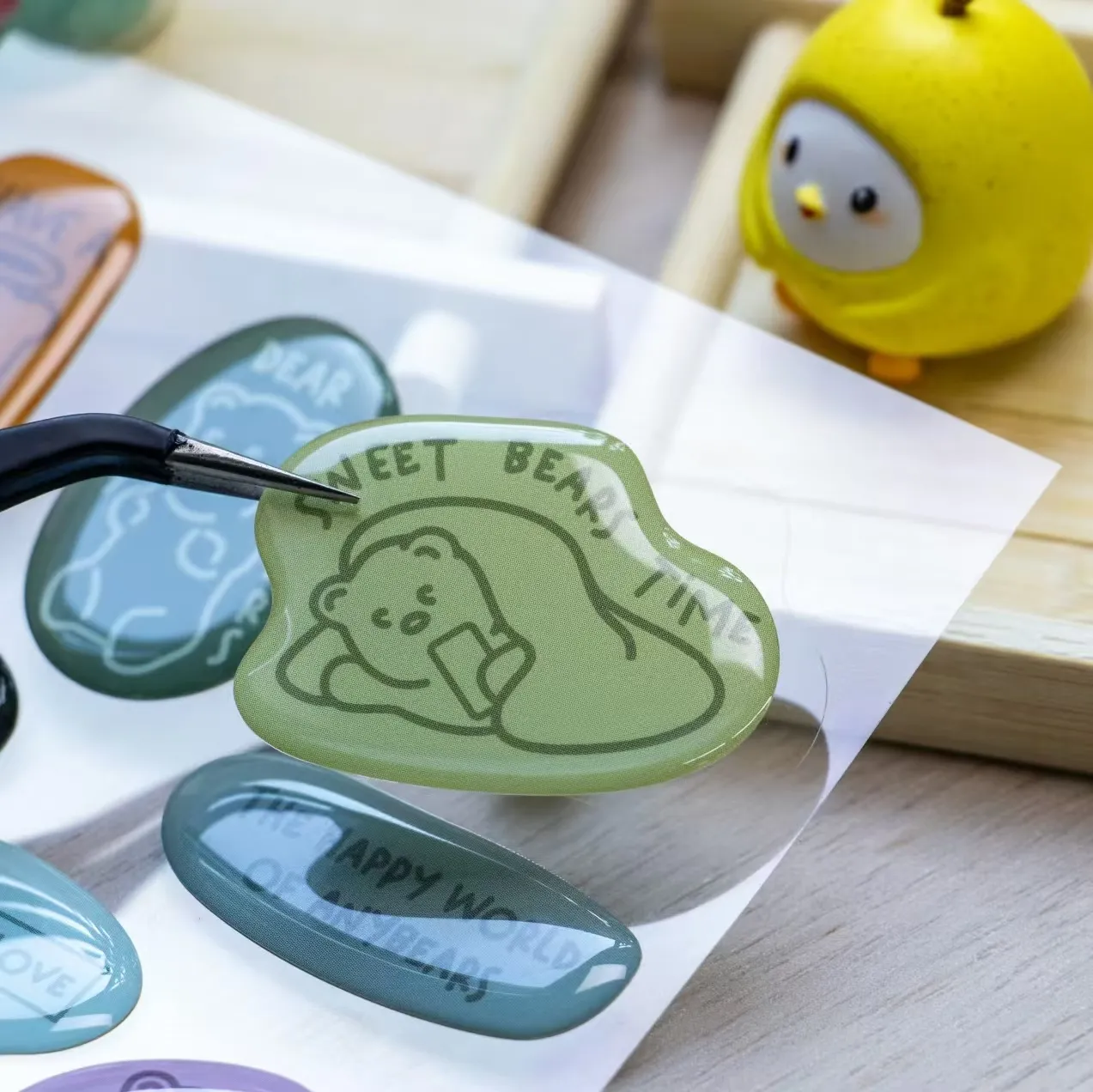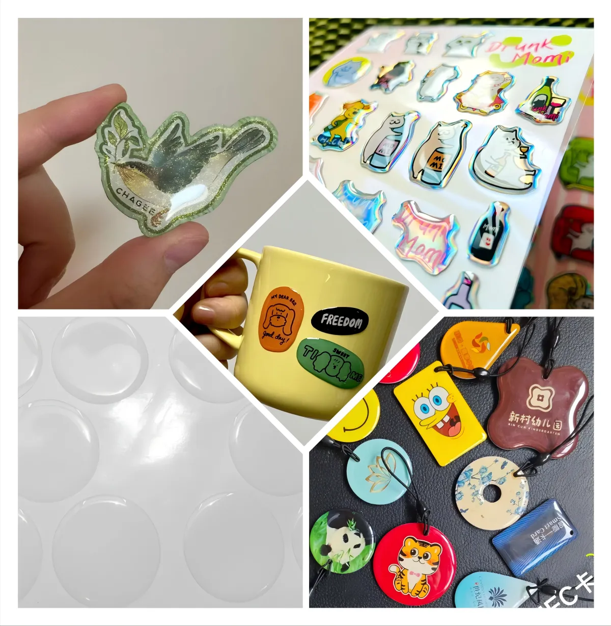 Ang mga sticker ng dome epoxy resin, na tinatawag ding epoxy dome label o 3D resin domed decals, ay mga produktong pandikit na ginawa sa pamamagitan ng paglalagay ng transparent, high-gloss na epoxy resin layer sa mga naka-print na disenyo. Ang dagta ay bumubuo ng nakataas, hugis-simboryo na ibabaw na nagpapalakas ng parehong visual appeal at tibay.