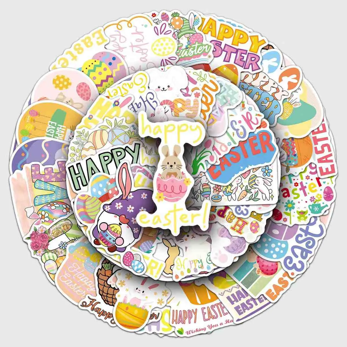 Angkop para sa iba't ibang mga gamit sa Pasko ng Pagkabuhay: mga maliliit na sticker para sa mga itlog o mga shell ng tsokolate, daluyan para sa mga kahon ng regalo at mga basket, at malaki para sa mga display ng window. Madaling alisin nang walang nalalabi mula sa mga ibabaw tulad ng baso, plastik, o kahoy.