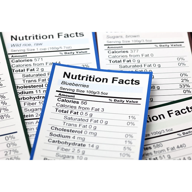 Kung naaangkop, ang isang talahanayan ng katotohanan ng nutrisyon ay dapat isama na nagpapakita ng laki at nilalaman ng calorie ng bawat paghahatid, pati na rin ang nilalaman ng taba, asukal, asin, bitamina at mineral.