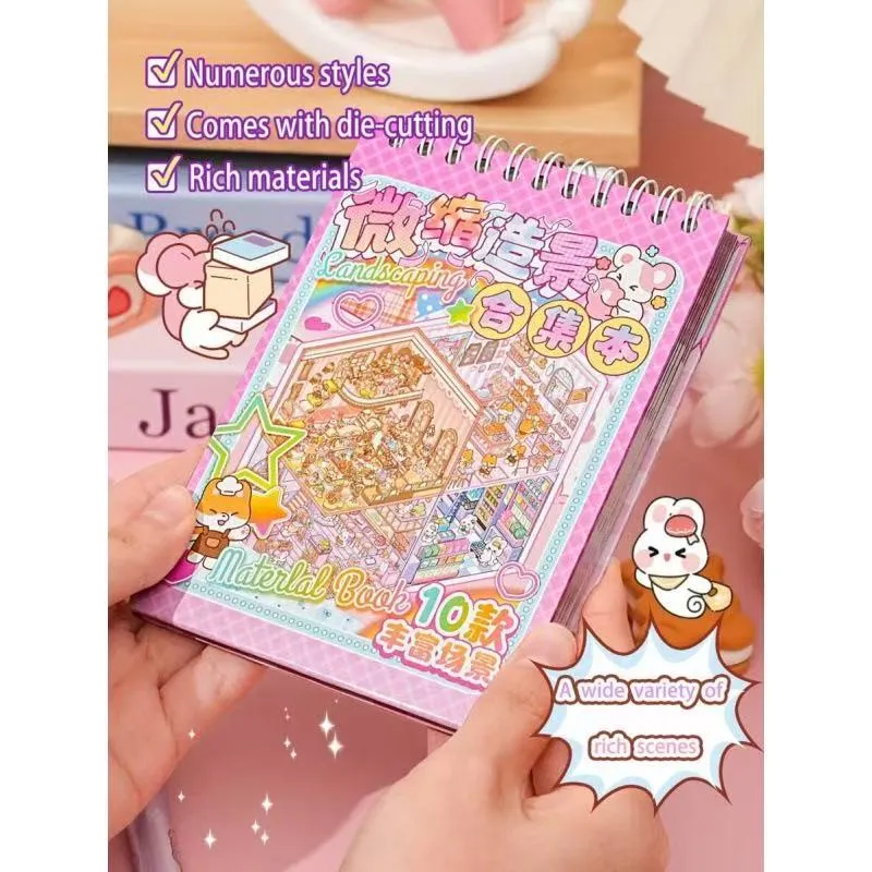 Ang miniature scene sticker book na ito ay isang nakaka-engganyong DIY na pangkultura at malikhaing produkto na maingat na ginawa ng aming kumpanya. Nagtatampok ang bawat aklat ng 10 natatanging mga eksena sa tema, na sinamahan ng daan-daang de-kalidad na miniature na sticker. Sa pamamagitan ng layered na disenyo at high-definition na proseso ng pag-print, tumpak nitong ginagawa ang mga detalye ng mga totoong eksena. Sa panahon ng proseso ng pag-assemble, ang mga user ay maaaring mapawi ang stress, linangin ang konsentrasyon, at ilabas ang kanilang pagkamalikhain upang lumikha ng isa-ng-a-uri na mga miniature na gawa.