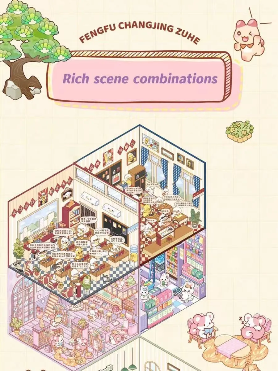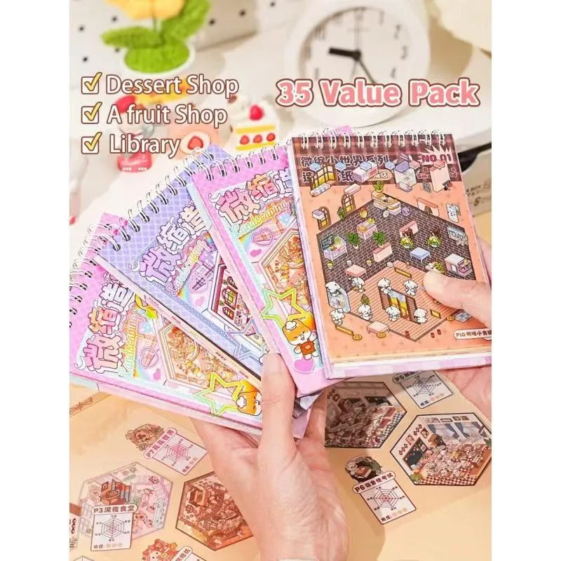 Ang miniaturized scene sticker book na ito ay naglalaman ng 10 iba't ibang may temang eksena sa bawat volume, na sumasaklaw sa iba't ibang istilo. Pinagsasama nito ang stress relief, entertainment, intelektwal na pag-unlad, at mga function ng dekorasyon, na ginagawa itong angkop para sa mga bata, teenager, at young adult. Ito ay isang mahusay na pagpipilian para sa pang-araw-araw na paglilibang, pakikipag-ugnayan ng magulang-anak, at bilang isang regalo para sa mga festival.