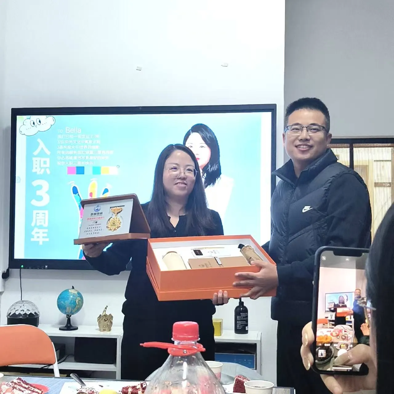 Bilang isang kamangha -manghang sorpresa, personal din na ipinakita ni Boss Gao ang magagandang mga regalo sa anibersaryo ng trabaho kina Tom at Ella, at manager na si Bella. Ang mga espesyal na token na ito ay isang taimtim na pagkilala sa kanilang mga kontribusyon sa mga nakaraang taon at isinasagawa ang aming pinakamahusay na kagustuhan para sa kanilang patuloy na paglaki sa kumpanya.