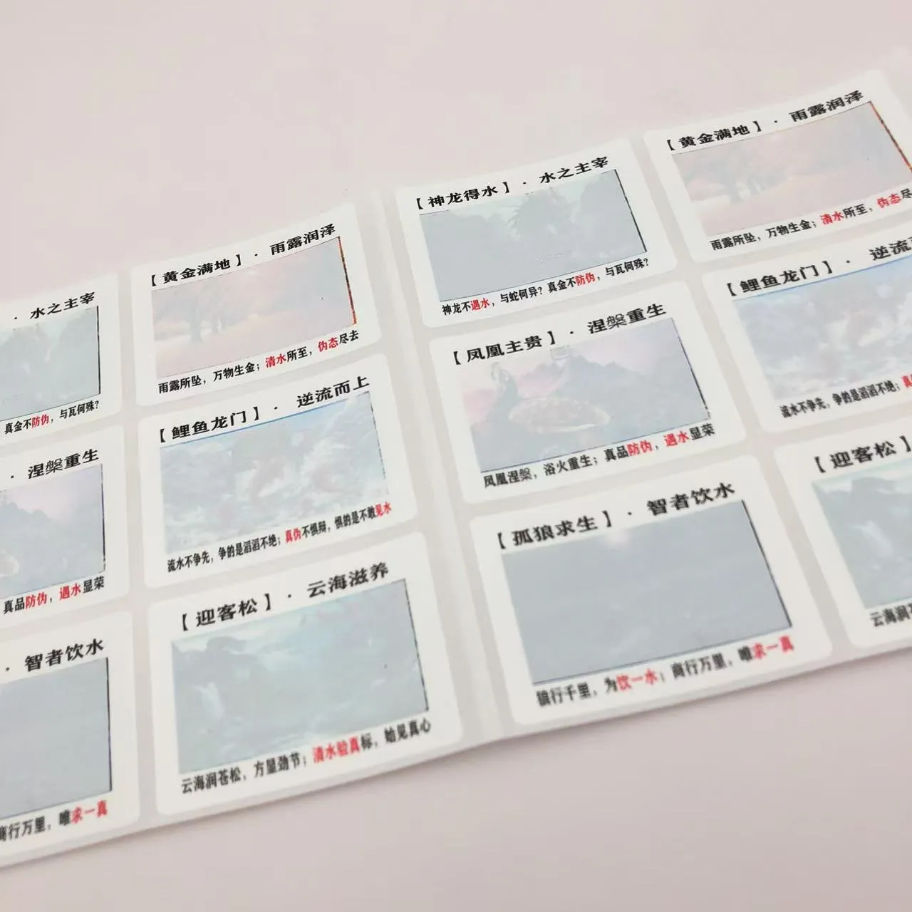 A mga label na sensitibo sa tubigisang matalinong materyal na naka-print na may espesyal na istraktura ng tinta na nakabatay sa tubig. Kapag na-expose sa tubig o iba pang transparent na likido, mabilis itong sumisipsip ng moisture, na nagiging dahilan upang maging halos transparent ang label sa loob ng humigit-kumulang 1 segundo—nagpapakita ng mga nakatagong pattern o text. Matapos mag-evaporate ang likido, maaaring bumalik ang ilang uri ng card sa orihinal na estado nito para sa paulit-ulit na paggamit.