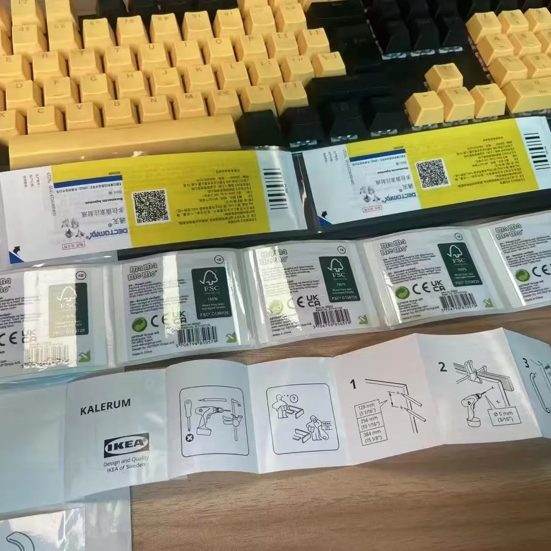 Ang mga nakatiklop na label ay nagbibigay ng maraming beses sa puwang ng pag -print ng kanilang lugar ng saklaw sa sobrang limitadong mga ibabaw ng produkto, tulad ng mga katawan ng bote, mga tubo ng pagsubok, at maliit na elektronikong aparato. Ang impormasyon ng mga nakatiklop na label ay layered: ang pinakamalawak na layer ay buod ng impormasyon, tulad ng pangalan ng produkto at logo, at ang panloob na layer ay detalyadong impormasyon, tulad ng listahan ng sangkap, mga tagubilin sa paggamit, barcode, multilingual na pagsasalin, atbp.