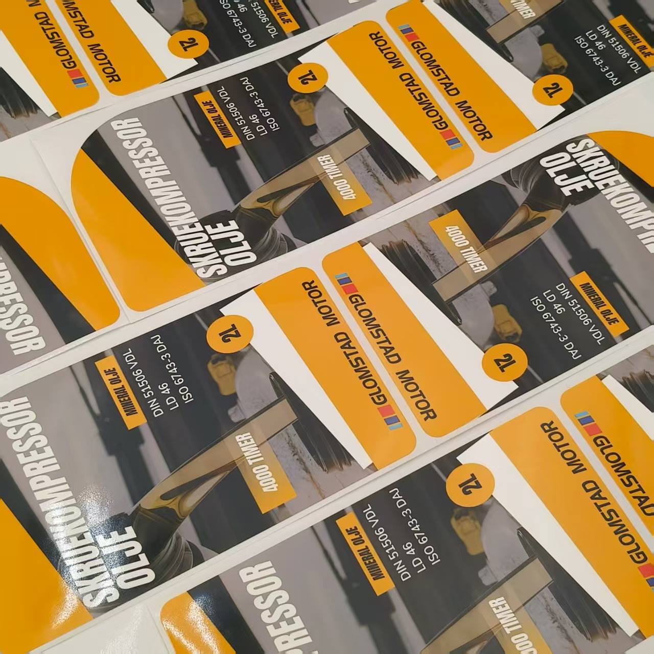 Kagamitan sa Pang -industriya: Ang mga produktong langis ng engine na ginagamit sa kagamitan na nangangailangan ng pagpapadulas ng langis, tulad ng mga generator, compressor, at iba't ibang mga makinarya na pang -industriya, ay angkop din para sa aming mga label ng langis ng engine. Tinitiyak nito na sa mga kumplikadong kapaligiran sa pagtatrabaho, ang pang -industriya na kagamitan ay maaari ring makakuha ng tumpak na impormasyon ng langis sa pamamagitan ng mga label, tinitiyak ang matatag na operasyon ng kagamitan at pagbabawas ng paglitaw ng mga pagkakamali.
