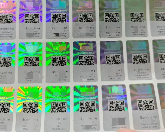Advanced na kagamitan sa paggawa at teknolohiya:Nagtataglay kami ng mga advanced na kagamitan sa paggawa ng label at magagandang pamamaraan sa pag -print. Nag-ampon kami ng maraming mga teknolohiya ng pag-print ng anti-counterfeiting tulad ng laser holograms at microtext, at mahigpit na sumunod sa mga sistema ng pamamahala ng kalidad upang matiyak ang matatag at maaasahang kalidad ng bawat label na anti-counterfeiting.