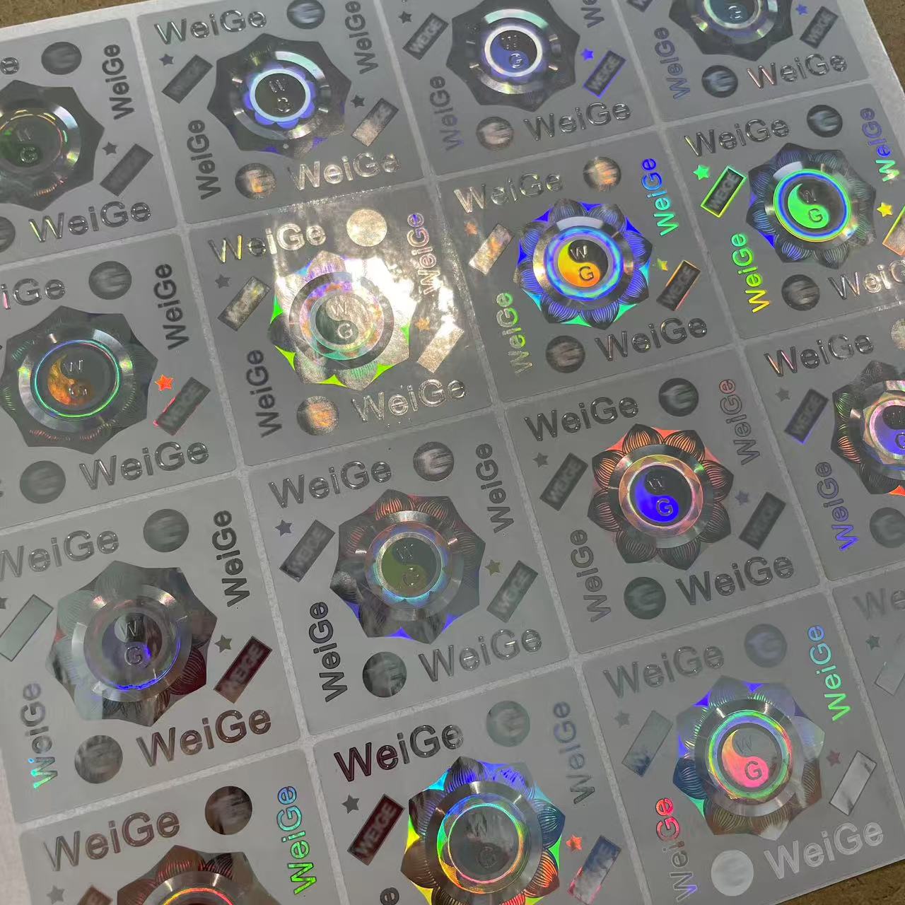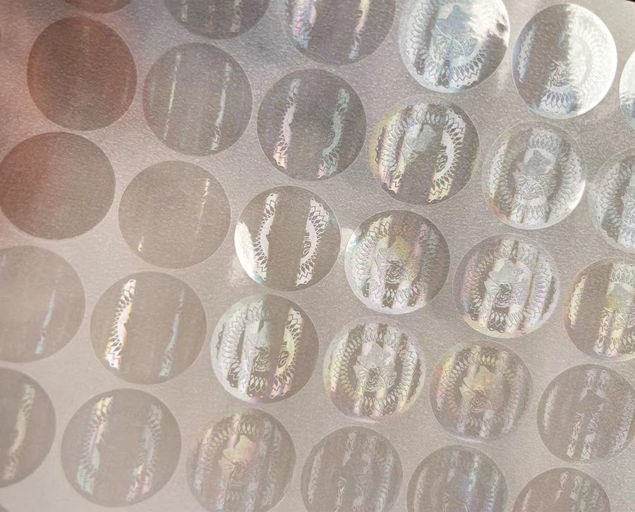 Holographic pattern ng hot press transfer printing: Ang mga kagamitan sa imprinting na may isang template ng metal ay preheated sa isang tiyak na temperatura at sumailalim sa tumpak na kinokontrol na presyon. Kasunod nito, ang materyal na vinyl na may naka -print na ordinaryong pattern ay malapit na sumunod sa template ng metal. Ang prosesong ito ay hindi lamang nagsisiguro na ang pattern ng holographic ay mahigpit na nakakabit sa label ngunit ginagarantiyahan din ang perpektong pagtatanghal ng mga detalye ng pattern at three-dimensionality. Mula sa iba't ibang mga anggulo, maaari itong magpakita ng isang natatanging napakatalino na epekto tulad ng isang bahaghari.